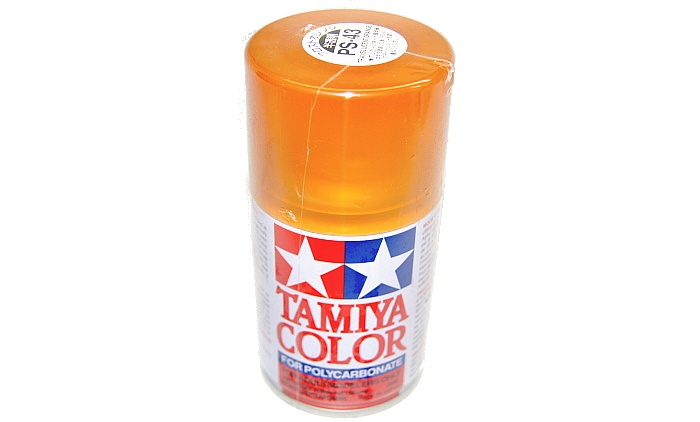 Краска для поликарбоната (лексана) PS-43 (прозрачный-оранжевый) в аэрозольном баллоне для окрашивания кузовов автомоделей.