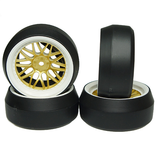 Yeah Racing Spec D LS Wheel Offset 6 White Gold w/Tire 4pcs For 1/10 Drift WL-0088