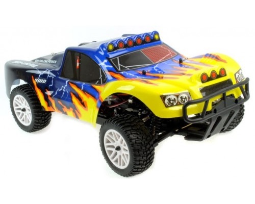 HSP 94270 Electric Powered Off Road 1/10 - данная модель относится к классу профессиональных внедорожных моделей (off-road) на радиоуправлении с электрическим коллекторным двигателем 540 серии. Данная модель создана специально для заездов по пересечённой местности, однако она демонстрирует хорошие показатели и на ровной асфальтированной поверхности. Автомобиль очень эффектно смотрится при езде по песку. Его шасси оснащены хорошими металлическими амортизаторами и рельефными шинами для идеального сцепления с трудной поверхностью. Жёсткость амортизаторов легко регулируется и настраивается под определённые особенности рельефа для наиболее лёгкого и быстрого старта. Максимальная скорость модели с заявленным двигателем 40 км/ч. Конструкцию от повреждений защищает усиленная ходовая часть, рама и прочный пластиковый кузов.