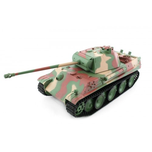Радиоуправляемая модель танка Heng Long (#HL3879) Panther Type G в масштабе 1:16 обладает высокой детализацией, и высоким техническим оснащением. Гусеницы и корпус модели выполнены из пластика. Модель оснащена пневмо пушкой, что позволяет вести огонь по мишеням с расстояния до 25 метров. Башня поворачивается 320 градусов. Благодаря рабочей подвески танк может двигаться на подъем до 20 градусов.