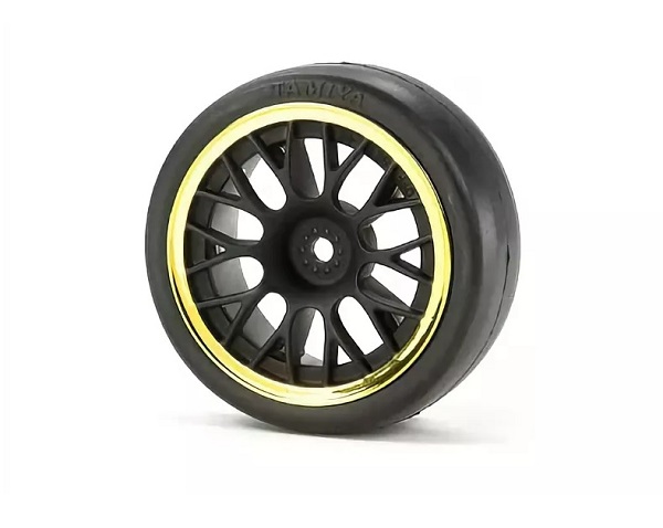 Tamiya (#84242) Medium-Narrow 10-Spoke Wheels Black/Gold Rim - Диски для шоссейных моделей 1:10.